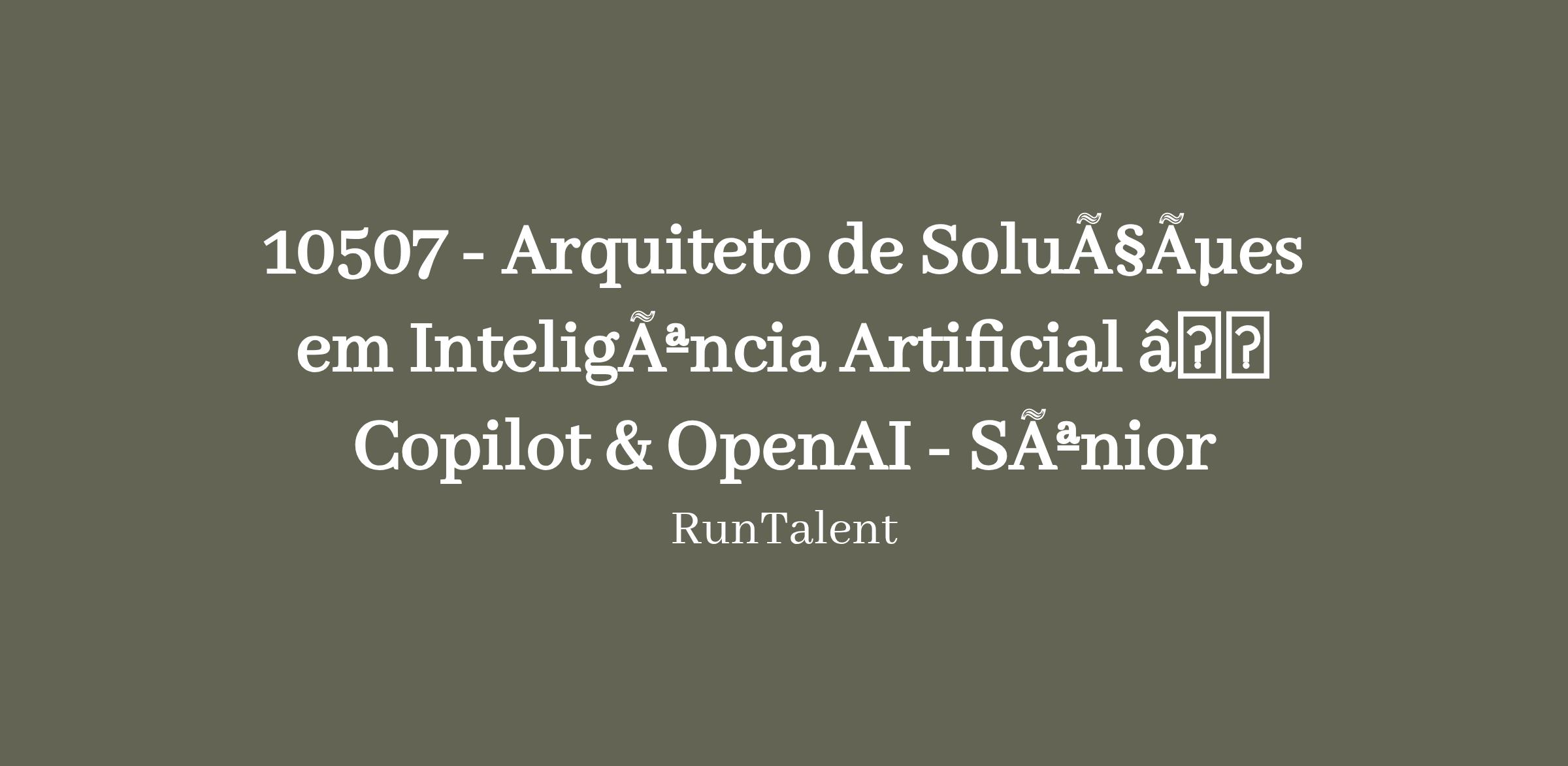 <\/html>"}}],"isMobile":false,"iframe":"true","jobType":"Tempo integral","applyName":"Candidatar\-se agora","zsoid":"696551369","isRemoteJob":true,"FontFamily":"PuviRegular","jobOtherDetails":[{"fieldLabel":"Tempo de Alocação","uitype":2,"value":"Indeterminado"},{"fieldLabel":"NÃvel da Vaga","uitype":2,"value":"Sênior"},{"fieldLabel":"Indústria","uitype":2,"value":"Administração"},{"fieldLabel":"Indique e Ganhe","uitype":21,"value":"https:\/\/zfrmz.com\/nFKOoLAJohMW2xSOQ6hd"},{"fieldLabel":"Código da vaga","uitype":111,"value":"10507"}],"headerName":"10507 \- Arquiteto de Soluções em Inteligência Artificial â Copilot & OpenAI \- Sênior","widgetId":"554230000001114248","awliIntegId":"urn:li:organization:62848","isJobBoard":"false","userId":"554230000069602043","attachArr":[],"awliApiKey":"869z4v3dlo7w8d","customTemplate":"5","awliHashKey":"a0f01a7be7fecb710def0e7b06f3035db941a2560fd70291796c4d4ab27df1a204994a1e6fb186ac5f541c91b92b24bb60554a65e0e0c15edbd2be2e1058ae9a","isCandidateLoginEnabled":false,"jobId":"554230000126497252","FontSize":"15","location":"","embedsource":"CareerSite","indeedCallBackUrl":"https:\/\/recruit.zoho.com\/recruit\/JBApplyAuth.do"}