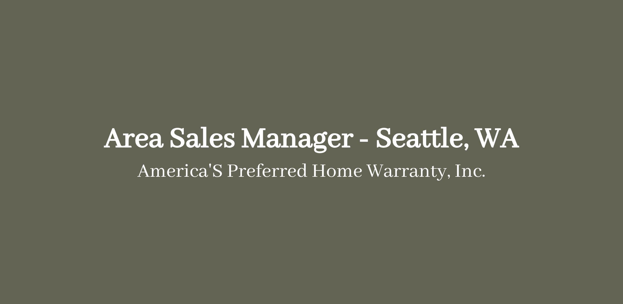 Area Sales Manager - Seattle, WA