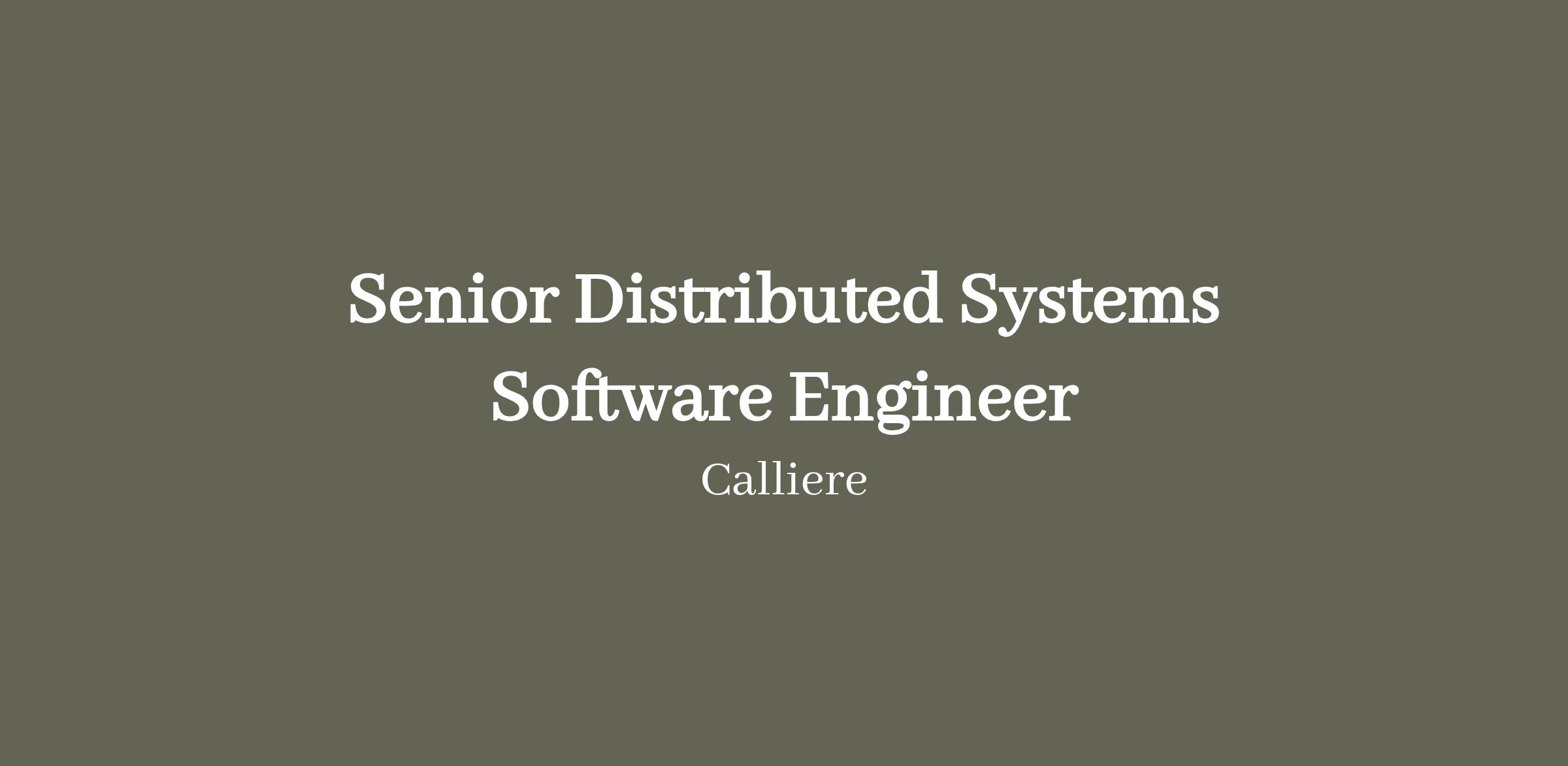 <\/body> <\/html>"}}],"isMobile":false,"iframe":"true","jobType":"Full time","applyName":"Apply Now","zsoid":"688258619","isRemoteJob":true,"FontFamily":"Verdana, Geneva, sans\-serif","jobOtherDetails":[{"fieldLabel":"Salary","uitype":1,"value":"$190,000 \- $300,000 USD base + perks"},{"fieldLabel":"Industry","uitype":2,"value":"Technology"}],"headerName":"Senior Distributed Systems Software Engineer","widgetId":"531753000000072311","isJobBoard":"false","userId":"531753000000248003","attachArr":[],"customTemplate":"3","isCandidateLoginEnabled":false,"jobId":"531753000015892065","FontSize":"12","googleIndexUrl":"https:\/\/callieregroup.zohorecruit.com\/recruit\/ViewJob.na?digest=u6RCQRHkFYC6J5ac54igRQlLZaU8beSLrimupBTN2BA\-&embedsource=Google","location":"","embedsource":"CareerSite","indeedCallBackUrl":"https:\/\/recruit.zoho.com\/recruit\/JBApplyAuth.do","logoId":"1gvk5a9fa9ad9912143c8885985d92ce2ae5f"}
