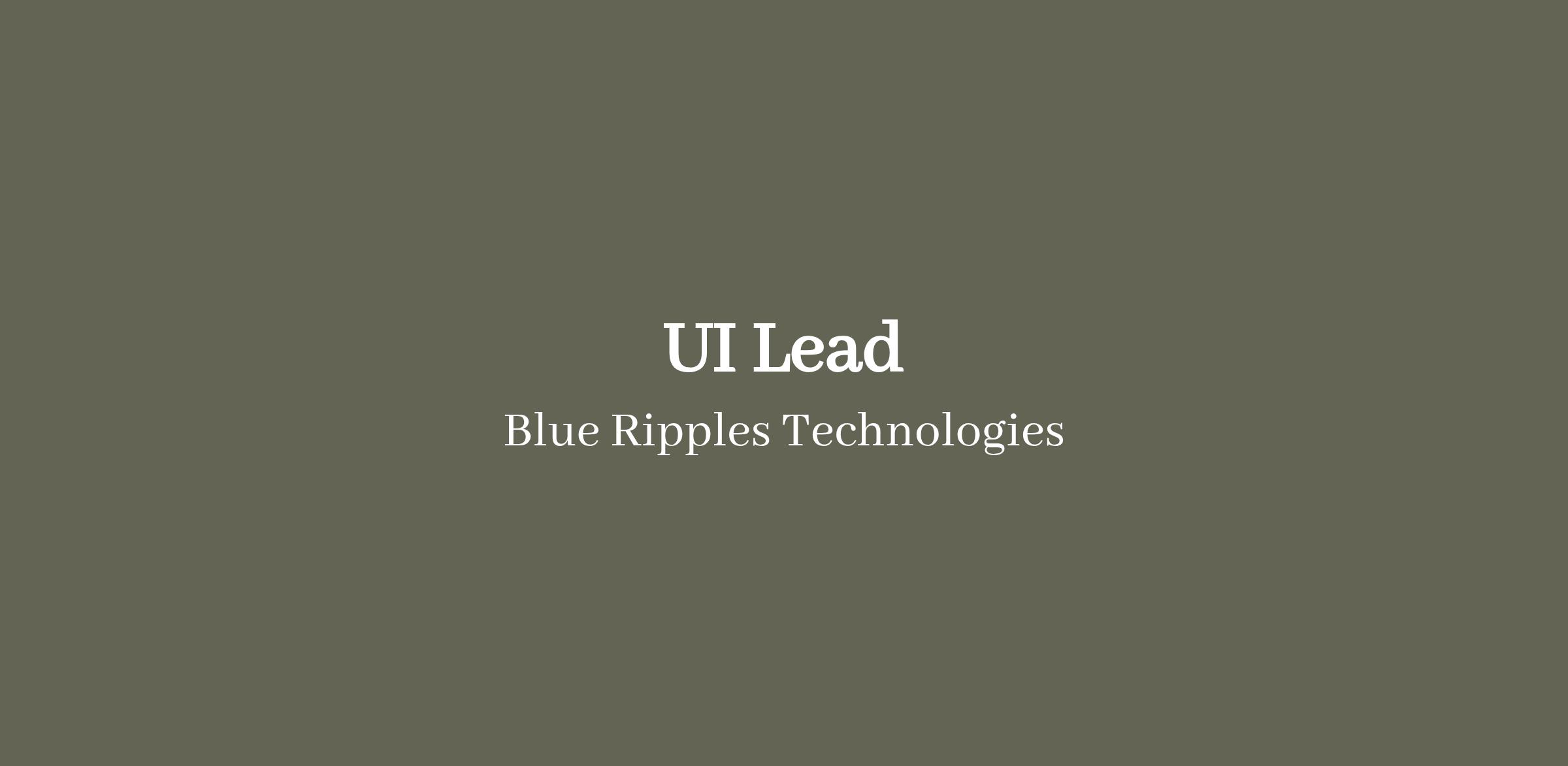 <\/html>"}}],"isMobile":false,"iframe":"true","jobType":"Full time\/\/Remote Job","applyName":"Apply Now","zsoid":"672338120","isRemoteJob":true,"FontFamily":"Verdana, Geneva, sans\-serif","jobOtherDetails":[{"fieldLabel":"Assigned Recruiter(s)","uitype":80,"value":"Sreegiri R"},{"fieldLabel":"Industry","uitype":2,"value":"IT Services"},{"fieldLabel":"Work Experience","uitype":2,"value":"7\-10years"}],"headerName":"UI Lead","widgetId":"446326000000072311","isJobBoard":"false","userId":"446326000000216003","attachArr":[],"customTemplate":"3","isCandidateLoginEnabled":false,"jobId":"446326000009704275","FontSize":"12","googleIndexUrl":"https:\/\/blueripples.zohorecruit.com\/recruit\/ViewJob.na?digest=jzSga3vsd8N8Jg6RFrSaExuCw5dNmhnL@UTU7ZVt@LI\-&embedsource=Google","location":"","embedsource":"CareerSite","logoId":"ev3g866b1ef3eb7a342889ca31eabc9c47665"}